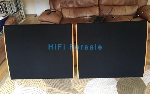 A pair of esl57 with black cloth grills