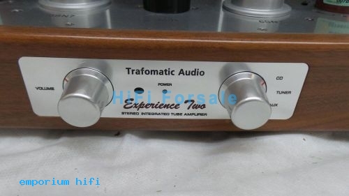| Trafomatic Experience Two 300B SET Valve Amp Excellent with good valves. The Experience Two model is part of a larger family called Experience and is a beautiful yet small integrated amplifier based on the cultist 300B power triodes. Those work in a classic SET circuit with a single output tube per channel to make low power. Trafomatic quotes the usual 8 watts in its data sheets. those are double C-core types. And there are more tubes in the signal path, two 6SN7 octal twin triodes er bass but n... |