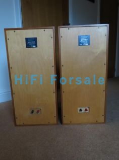 Red Alnico Magnets Good condition, no coil rubbing. Some light chips/knocks/marks to veneer of cabinets and some wear to grilles (fabric would benefit from being replaced but perfectly useable as is). All spigots on grilles intact. Grilles left off for pictures since they are a tight fit to remove. Voice coil resistances of bass/mid units measure 7.7 and 7.8 ohms. Sequential numbers 19535/6 Collection only. Happy to demo. |
