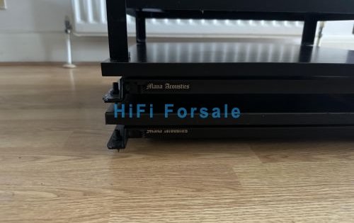 | Legendary Mana Acoustics Phase 4 Reference setup. Reference top ideal for TT, CD, Streamer etc, two shelves for Amps etc sitting on two stages. Condition very good, except for spike holes (from usage as youd expect) and one board has a bit of its formica edging missing, but this doesnt impact The Mana Effect. I recently sold 3 pairs of stands and sadly learned how real the effect is; my main system feels a bit flat now, some of its Mojo left with them. But, I need to downsize so thats life...
